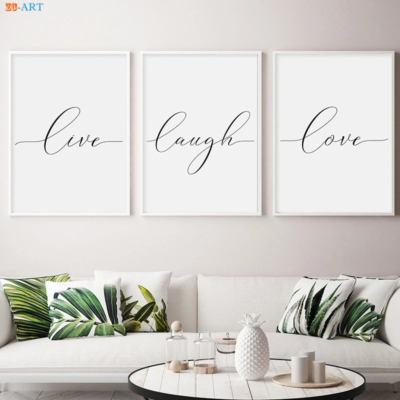 Live Laugh Love Posters And Prints Cuadros Decoracion Salon Black And White Decorative Picture Wall Art Nordic Decoration Home Painting Calligraphy Aliexpress